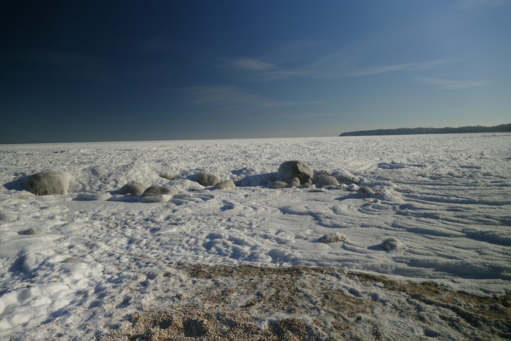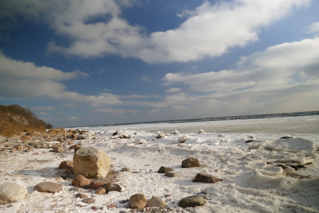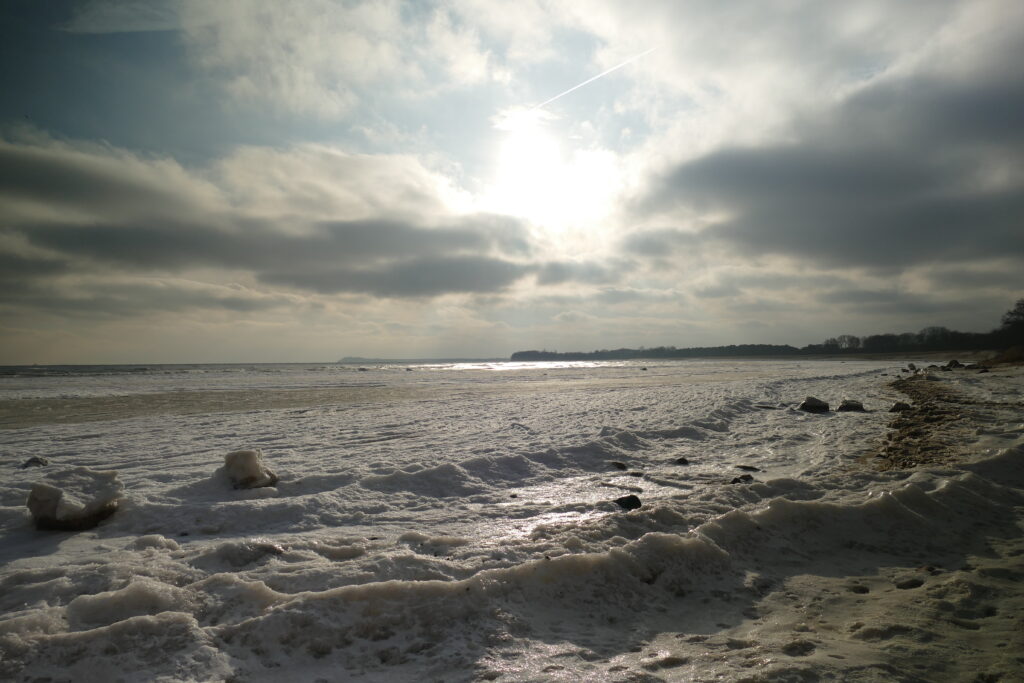 Die Ostsee hat sich über Nacht in Eis gehüllt. Keine Bewegung, kein Wellenrauschen. Nichts als eisige weiße Stille. Dazu scheint die Sonne vom blauen Himmel, keine Wolke unterbricht das Funkeln auf dem Eis. Eine Szenerie, die einen magisch anzieht. Faszinierend, unwirklich und unfassbar schön.