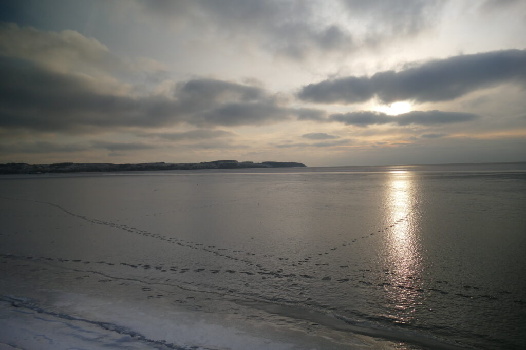 Die erste Überraschung erwartet mich schon bei Ankunft, der Bodden ist zugefroren.